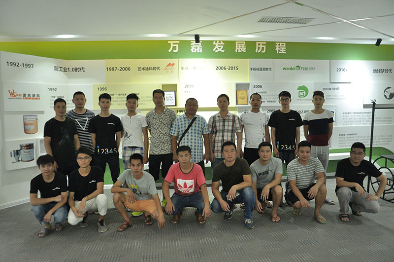 在這攔路打劫都說自己虧本的年代不管看起來利潤有多少都不一定是掙錢的,在藝術(shù)涂料就有關(guān)鍵的一環(huán)有著非常 大的坑,那就是不管材料有多好多好用多么絢麗也沒有,還得工藝師傅做出來;藝術(shù)涂料產(chǎn)出出來也還是一個半成品真正上 了墻才真的是成品。 這種綁架的無奈萬磊為你屏蔽掉--提供藝術(shù)涂料的培訓(xùn) 培訓(xùn)準(zhǔn)備結(jié)束時留影! 培訓(xùn)學(xué)院認(rèn)真學(xué)習(xí) 培訓(xùn)視頻