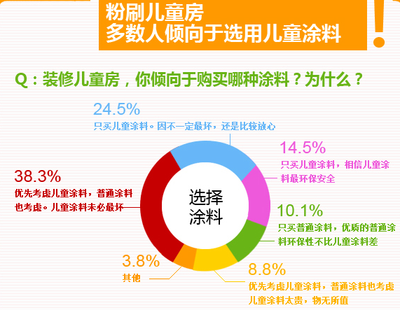 總結(jié):有兒童裝修經(jīng)歷或不久后進行兒童房裝修的人群中,對兒童房所用的涂料最注重的是硅藻泥涂料的環(huán)保型。